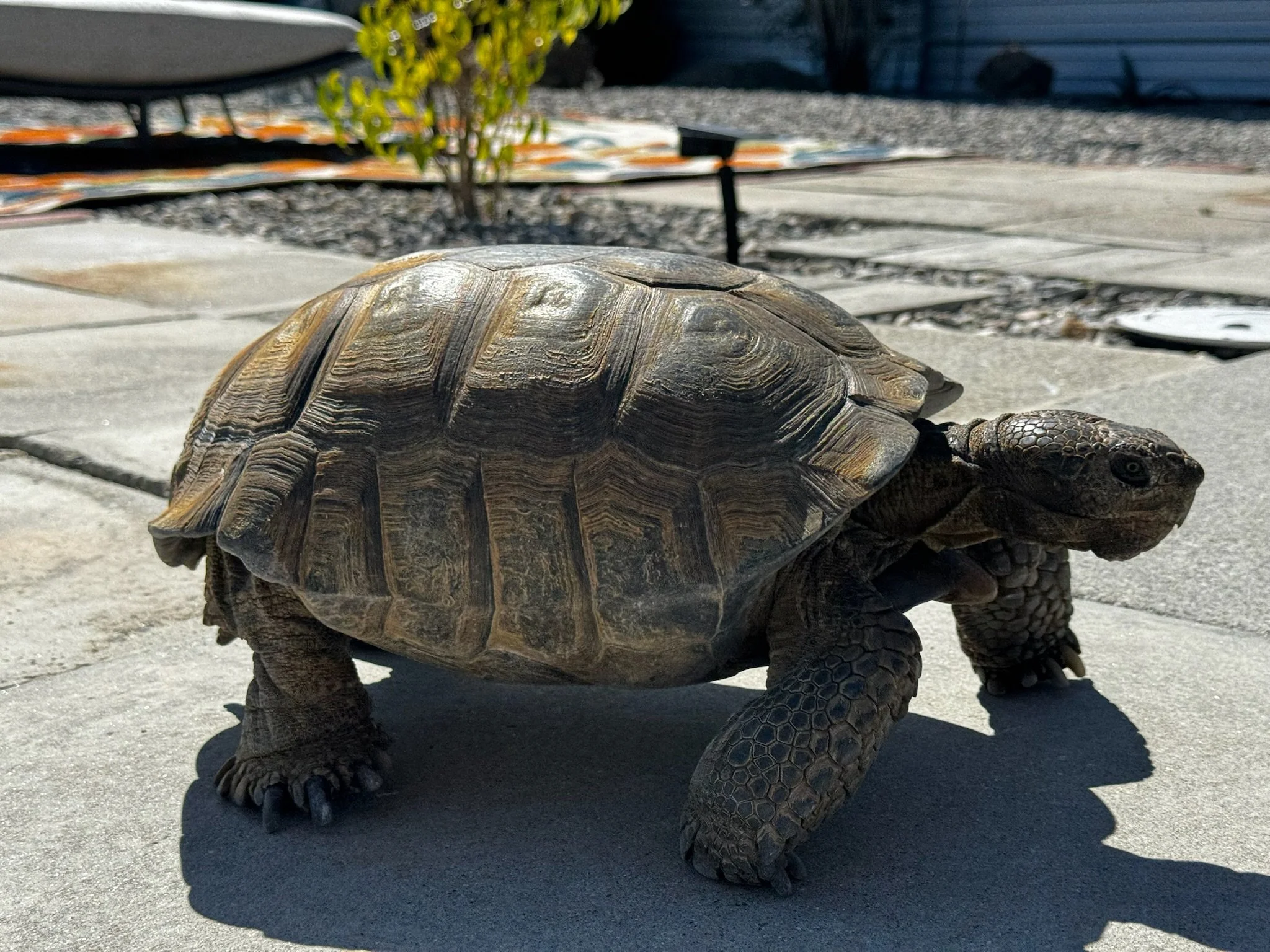 Just a few days earlier, I had installed a new sign out front for my business — Pet Care N Services. Looking at the tortoise, then at the sign, I thought, "did you come because of the sign?" He wandered in through the backyard gate when we opened it. He walked in like he already owned the place!